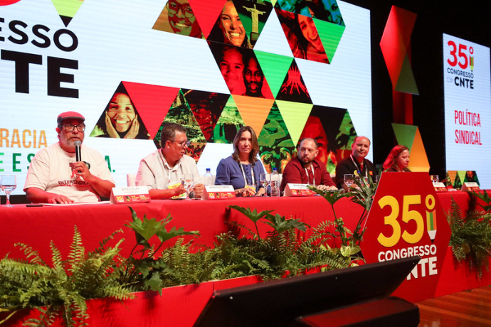 A mesa sobre política sindical reuniu representantes da CUT, CTB, Intersindical e CSP-Conlutas no 35º Congresso da CNTE e evidenciou a centralidade da unidade da classe trabalhadora diante dos desafios impostos à educação e aos direitos sociais no Brasil e no mundo. O debate foi mediado por Rosilene Corrêa, secretária de Finanças da CNTE, que destacou a importância da articulação entre as centrais para fortalecer as lutas históricas do movimento sindical.